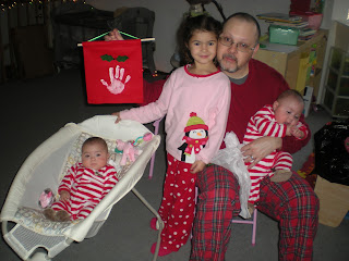 The pics are so cute. Brenna got that same Barbie Jet for Christmas. Too bad you couldn't all eat together. I remember eating in shifts last year too. Babies don't care what day it is. They want to be fed on their schedule! Happy New Year to you all!